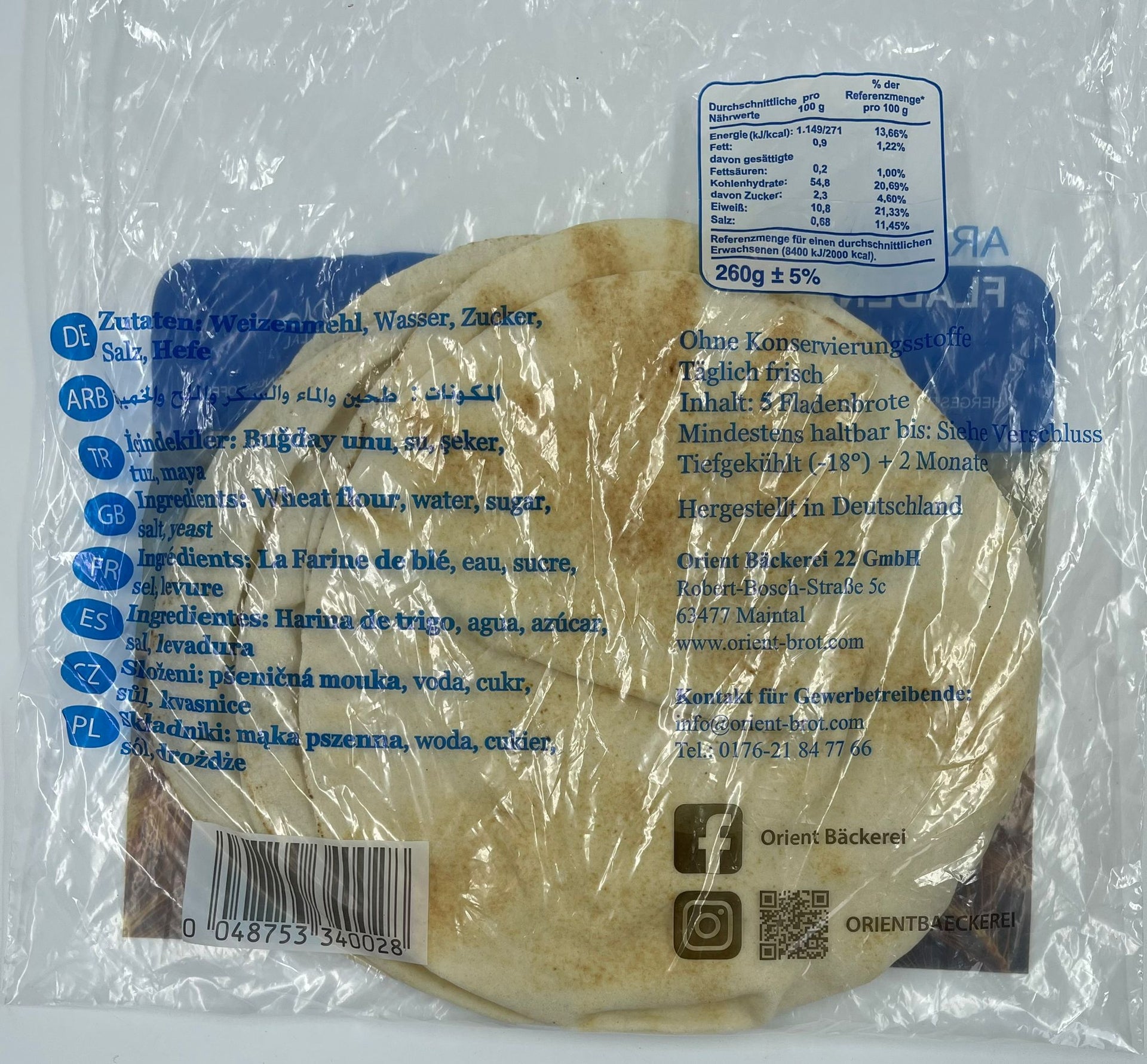 Orient Bäckerei Arabisches Fladenbrot Blau – Frisches Halal Brot (5 Stück, Ø 22–23 cm)