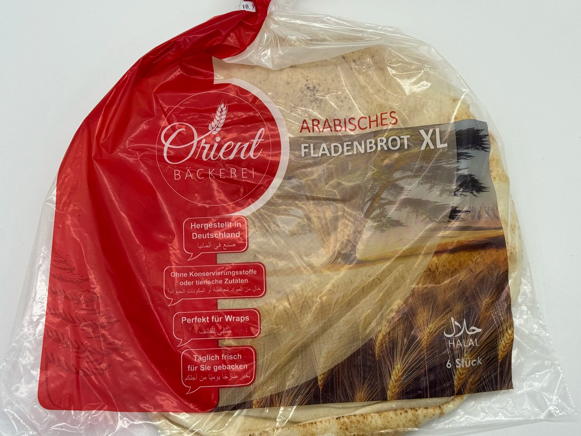 Orient Bäckerei Arabisches Fladenbrot Rot XL – Halal Fladenbrot (6 Stück, Ø 26–27 cm)